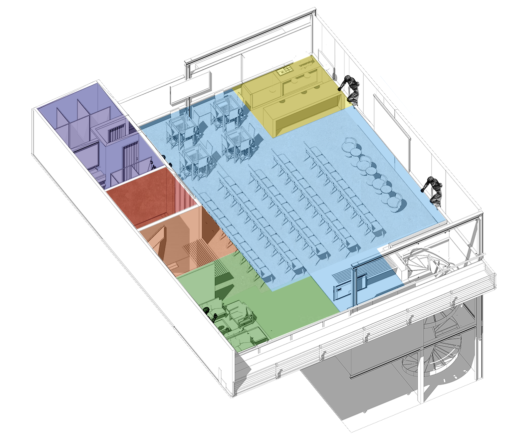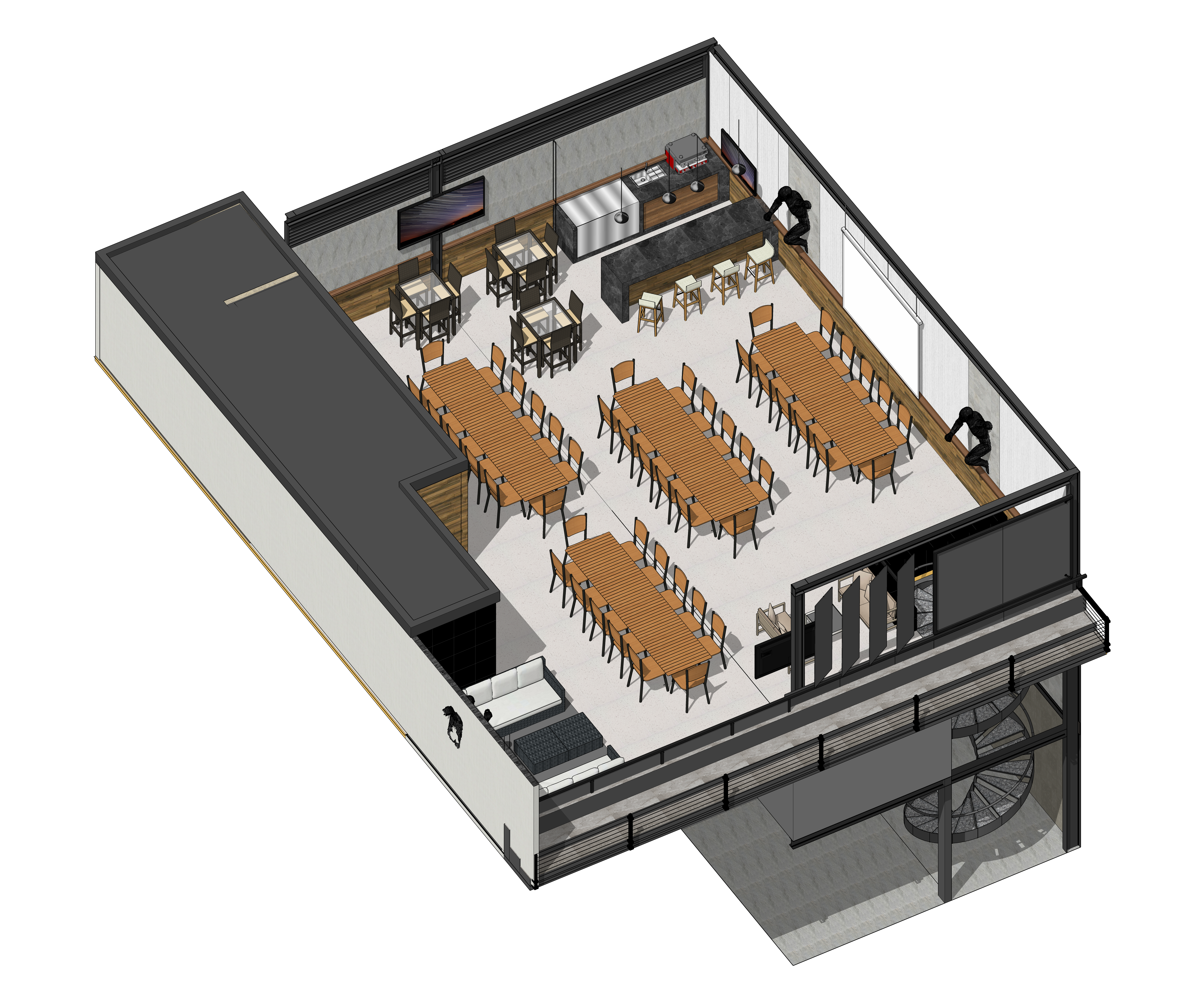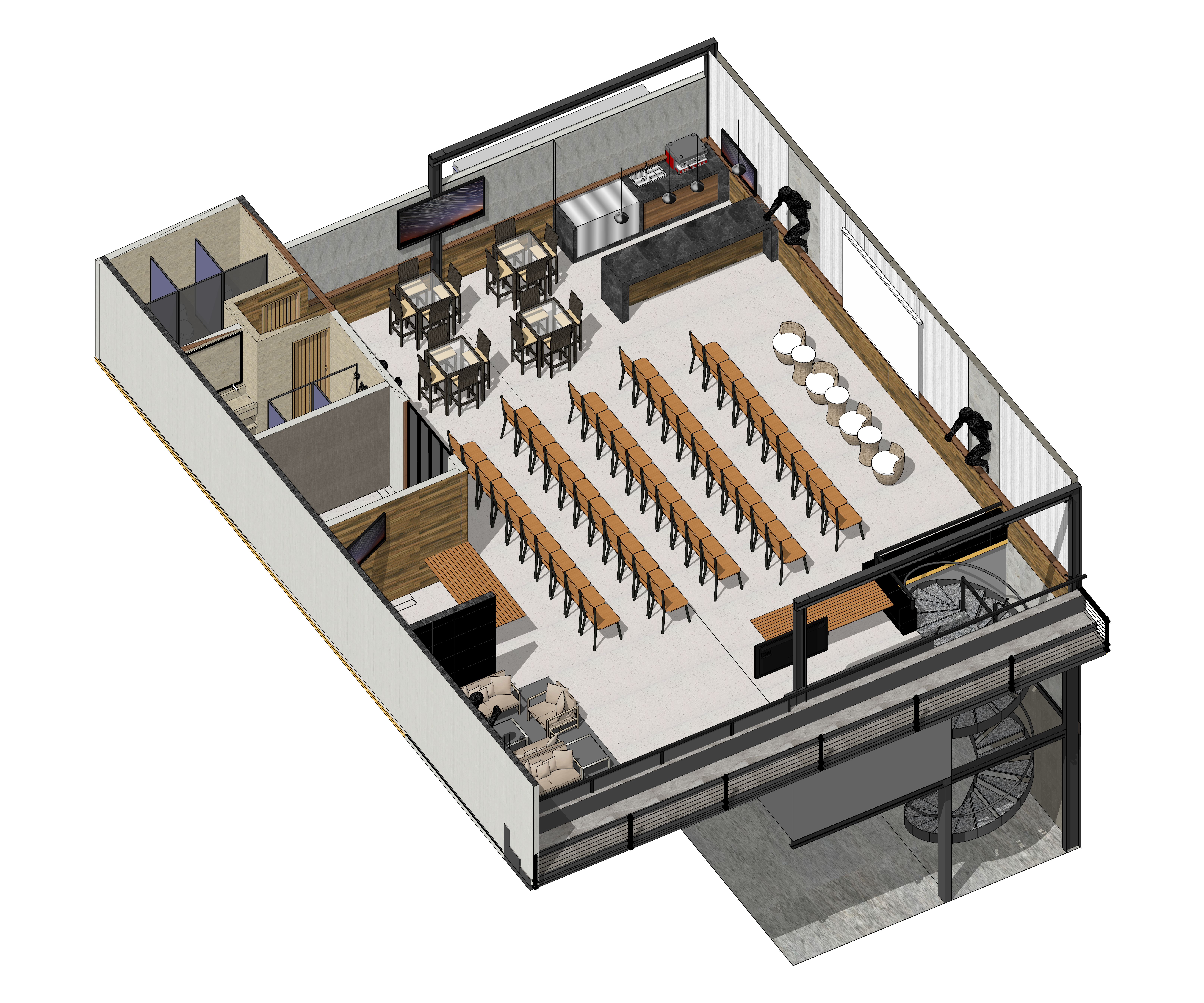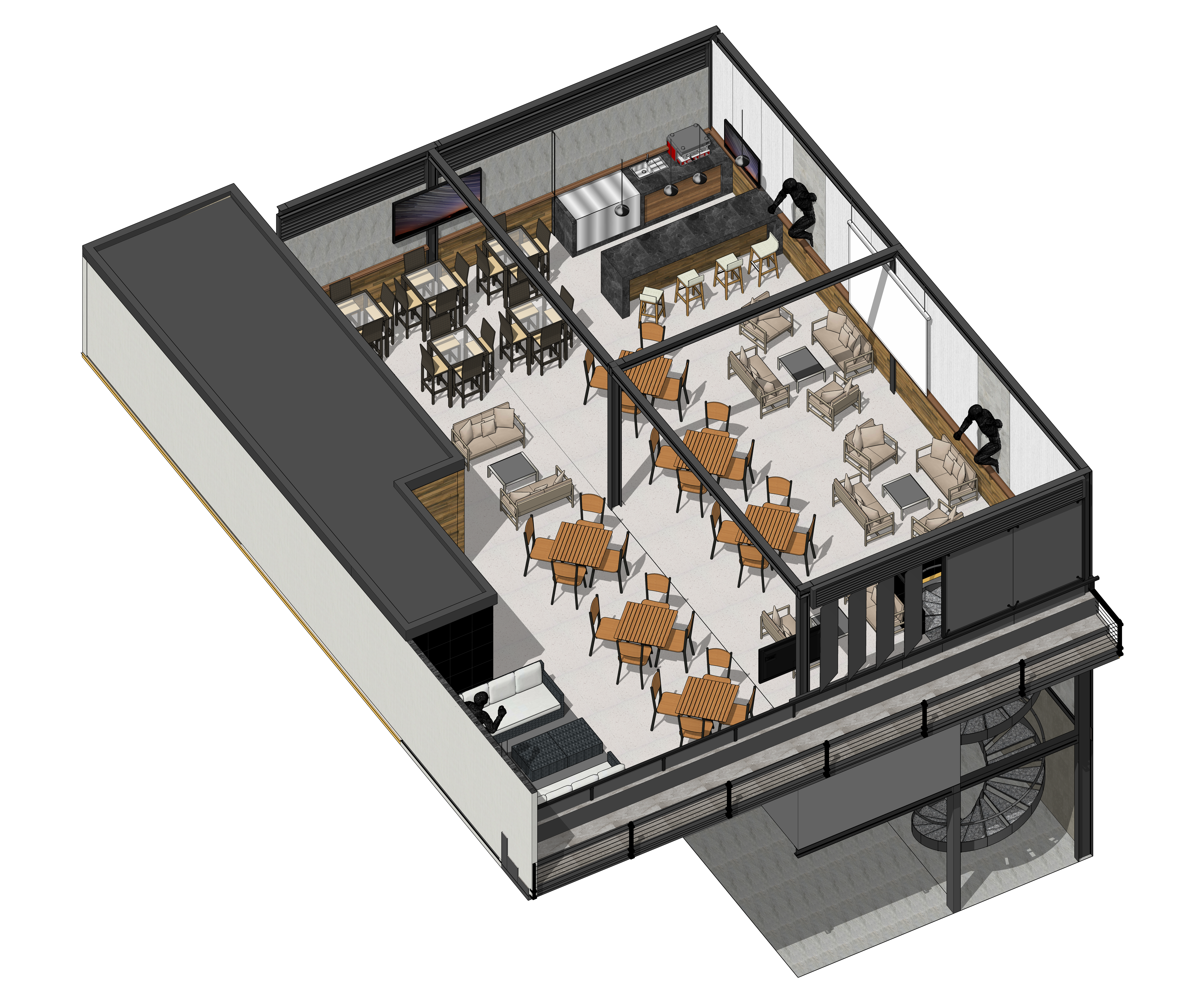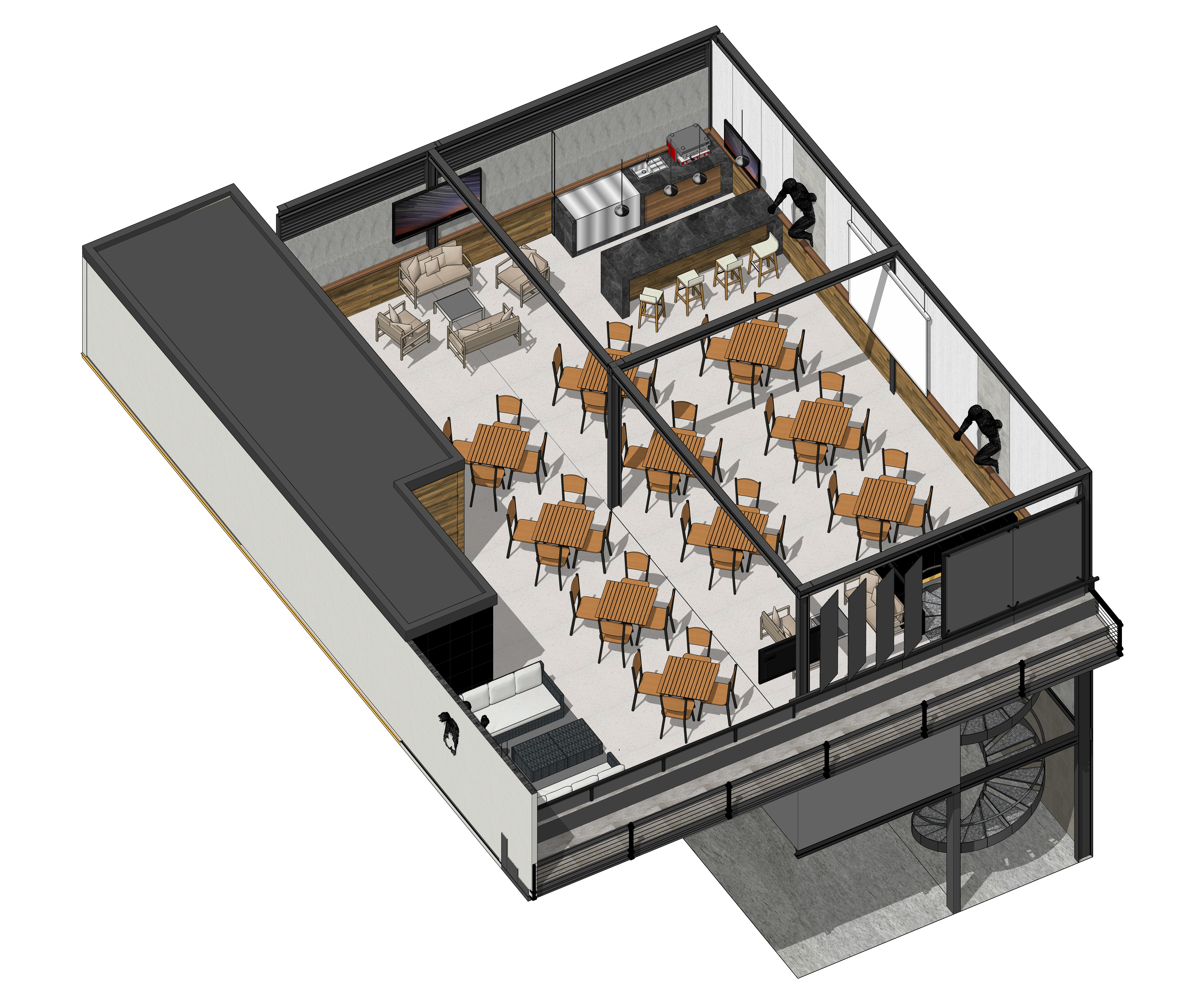 Se desplanta en una superficie de 160 m2 que ofrece distintos ambientes; más de la mitad se encuentra cubierto por una estructura de crsital con película para protección solar, así cómo un espacio al área libre,